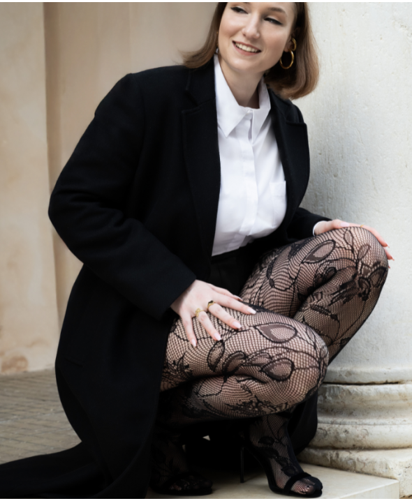 Entdecke den Charme eines Looks in Spitzenoptik mit dieser floralen Netzstrumpfhose, die entworfen wurde, um jedem Outfit einen Hauch von Sinnlichkeit und Raffinesse zu verleihen.